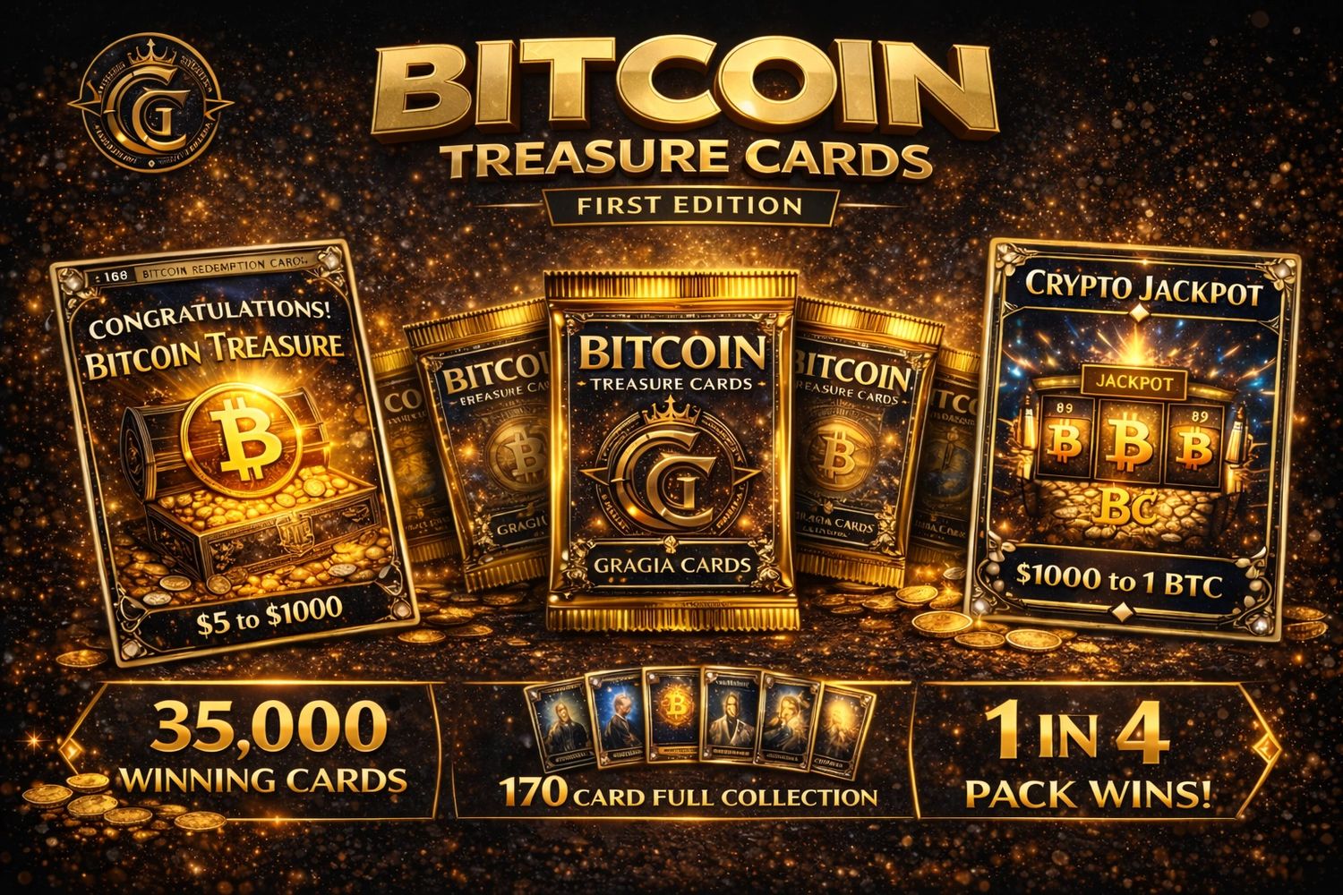 Bitcoin Treasure Cards — First Edition, created by Gracia Cards, transforms that incredible journey into a collectible trading card series.